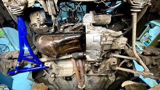 1. Поднимите заднюю часть автомобиля, чтобы получить доступ к механизму ручного тормоза.